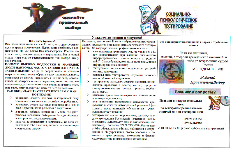 Информационный буклет для обучающегося "Сделай Правильный Выбор"